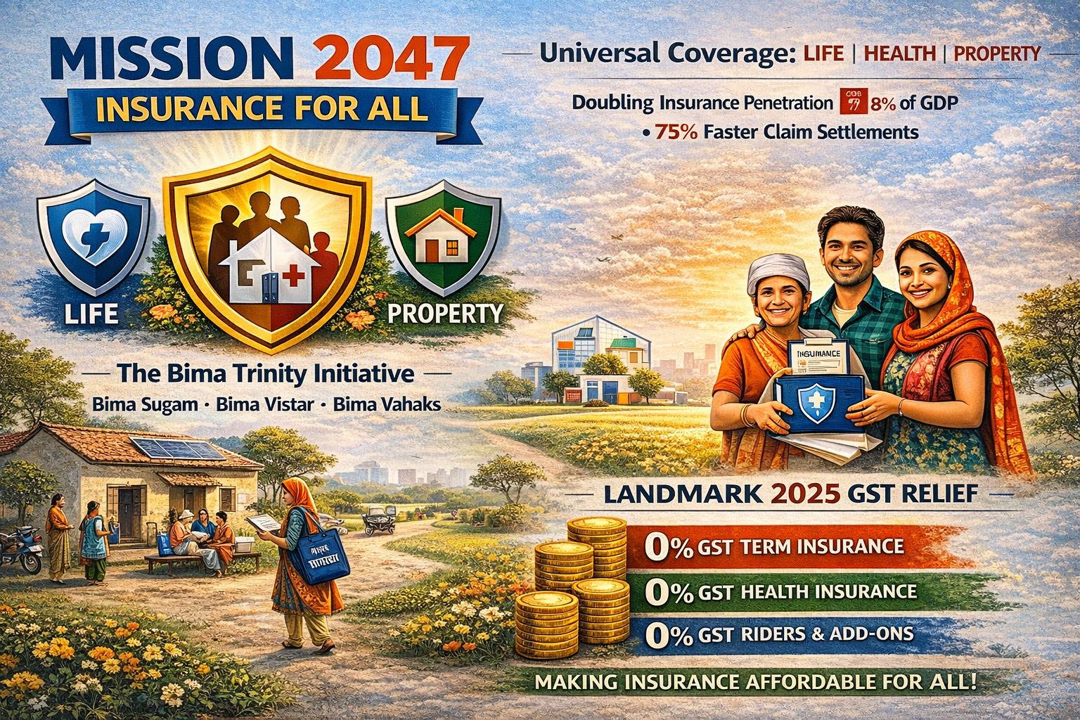 India aims to ensure every household and enterprise has life, health, and property insurance by 2047. This IRDAI-led initiative focuses on affordability, transparency, and faster claims.